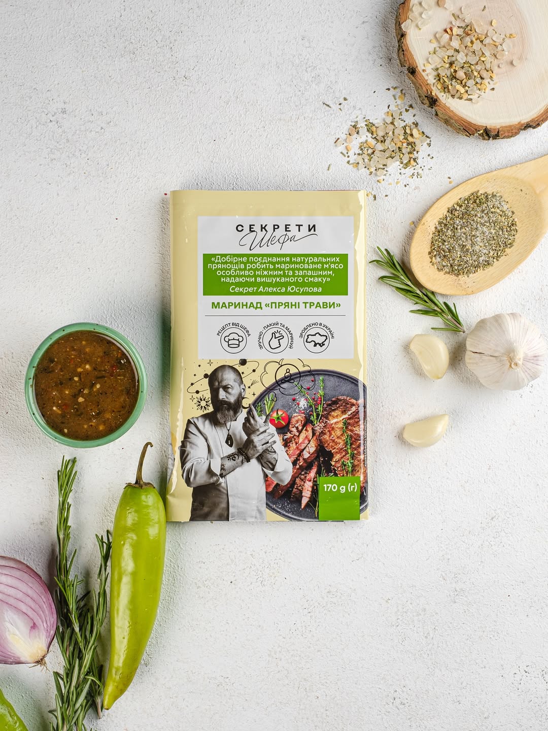 Маринади ТМ «Секрети Шефа» – це готові рішення для готування, розроблені нашими бренд-шефами, в яких вони відкривають секрет легкого, якісного та смачного маринування м'яса, одразу в упаковці, без додаткового посуду.